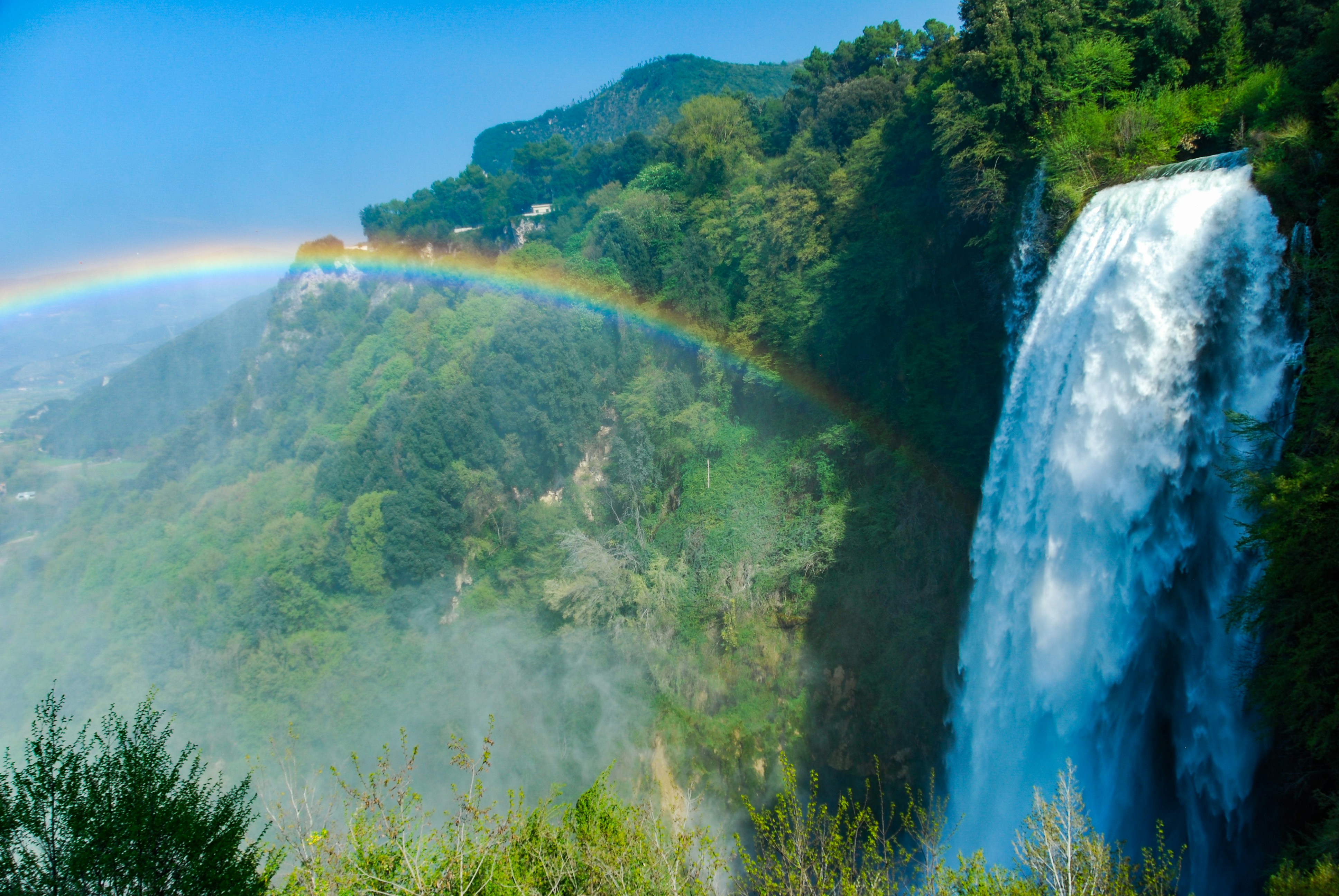 De Marmore-watervallen, gelegen nabij Terni, zijn een van de hoogste kunstmatige watervallen ter wereld. Oorspronkelijk door de Romeinen aangelegd, storten de watervallen zich over drie niveaus 165 meter naar beneden. Bezoekers kunnen het indrukwekkende natuurfenomeen van verschillende uitkijkpunten bekijken of wandelpaden volgen die je dicht bij het klaterende water brengen. De Marmore-watervallen zijn een spectaculaire combinatie van natuur en geschiedenis.