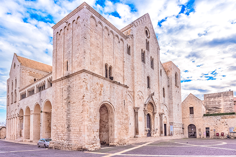 De Sint-Nicolaasbasiliek staat in de oude binnenstad van Bari. Wat velen mensen niet weten is, dat het geen kerk is die van de grond af is gebouwd, maar een tempel gebouwd op het gebied van de residentie van de cathepan en dus materialen zijn gebruikt uit de vorige bouw. Wist je dat Sint-Nicolaas werd begraven in Myra, nabij het huidige Demre in het zuidwesten van Turkije en daarna In 1087 werd overgebracht naar Bari door Italiaanse kooplieden van Myra?
